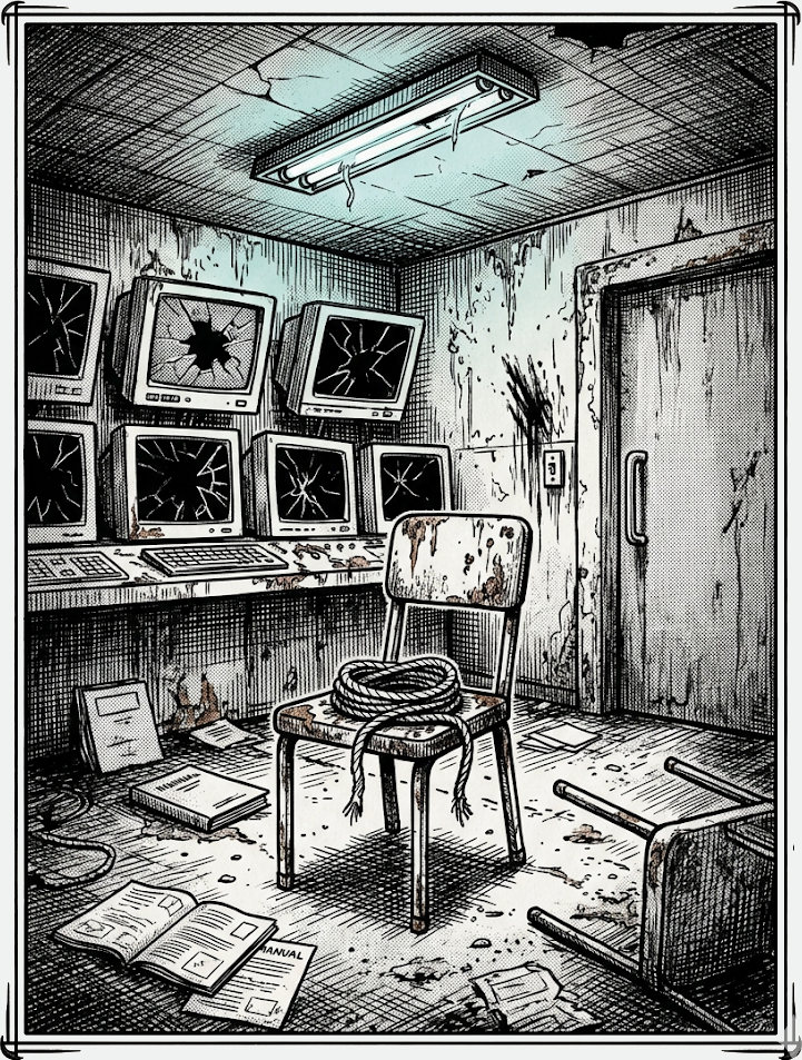 Numbered narrative entries. Story text with physical instructions: cross out, write in, move items, change rooms.
